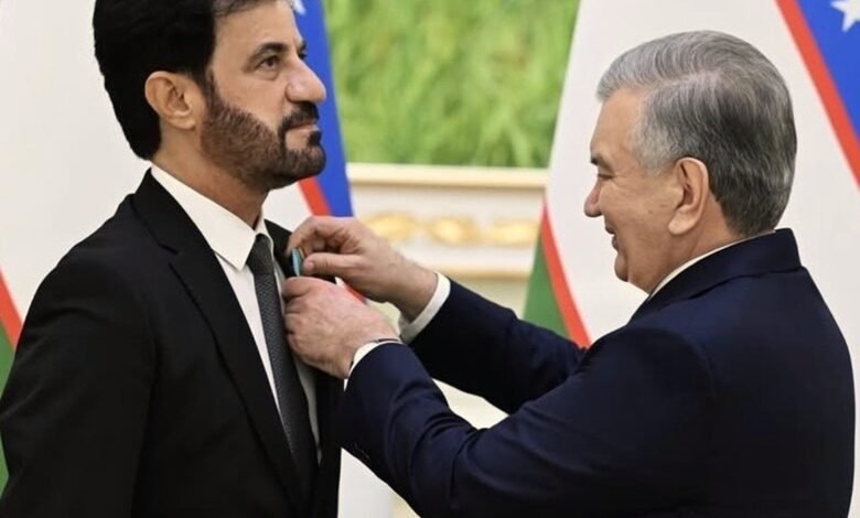 محمد بن سُليّم، رئيس الاتحاد الدولي للسيارات يتسلم وسام الصداقة، أحد أرفع الأوسمة في أوزبكستان