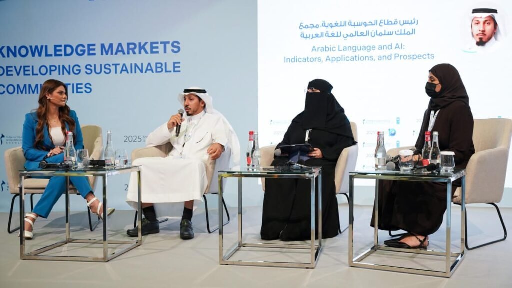أكَّد مشاركون في جلسة حوارية بعنوان «اللغة العربية والذكاء الاصطناعي: المؤشِّرات، والتطبيقات، والآفاق» أقيمت ضمن برنامج أعمال قمَّة المعرفة ٢٠٢٥، أن التطور المتسارع في تقنيات الذكاء الاصطناعي يفتح أمام اللغة العربية آفاقًا واسعة، شريطة توفير بنية لغوية ومعرفية متماسكة تقود هذا التحول وتضمن استدامته. وقالوا إن التكامل بين المؤسَّسات البحثية، والنماذج التقنية، والبيانات الموثوقة، يشكل الطريق الأكثر فعالية لصناعة مستقبل عربي متقدم في مجال الذكاء الاصطناعي