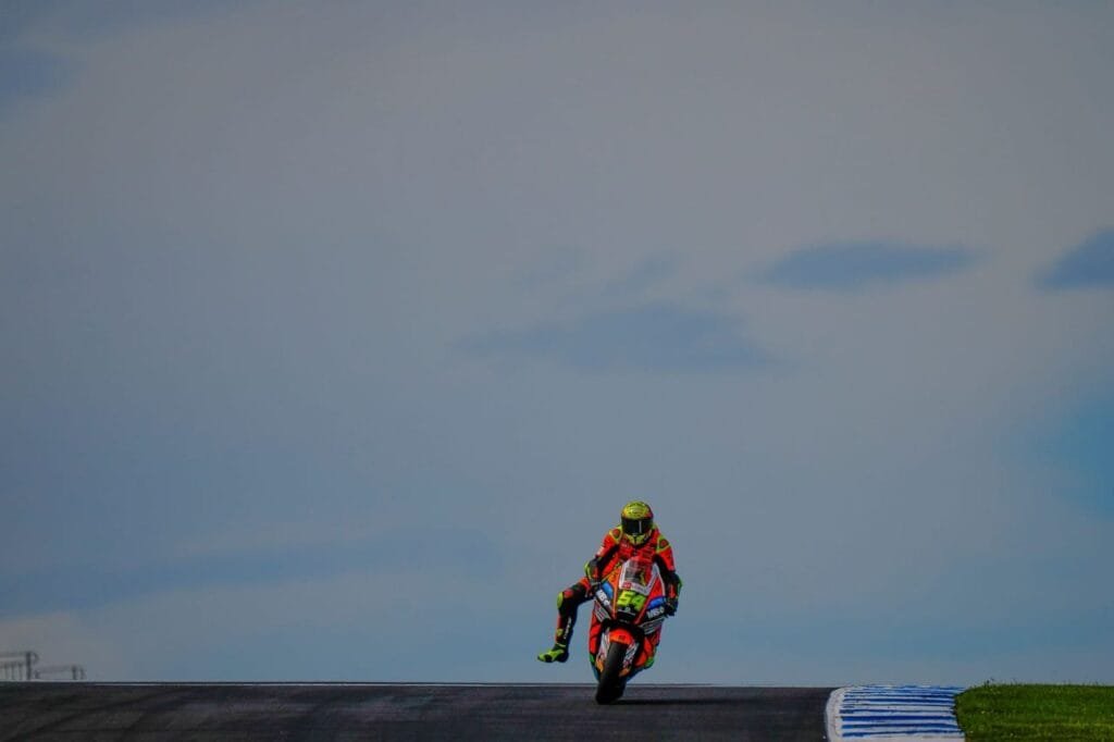 Following a wet Free Practice session in the morning, Phillip Island’s newly resurfaced layout dried out towards the end of Moto2 and coming out on top was Fermin Aldeguer (Beta Tools SpeedUp). The Spaniard set a 1:32.718 to beat Aron Canet (Fantic Racing) by a couple of tenths and teammate Alonso Lopez by three tenths to head into Saturday as the rider to catch.