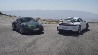 911 GT3 with Touring Package (l.) and 911 GT3 with Weissach Package Double world premiere to mark 25th anniversary of…
