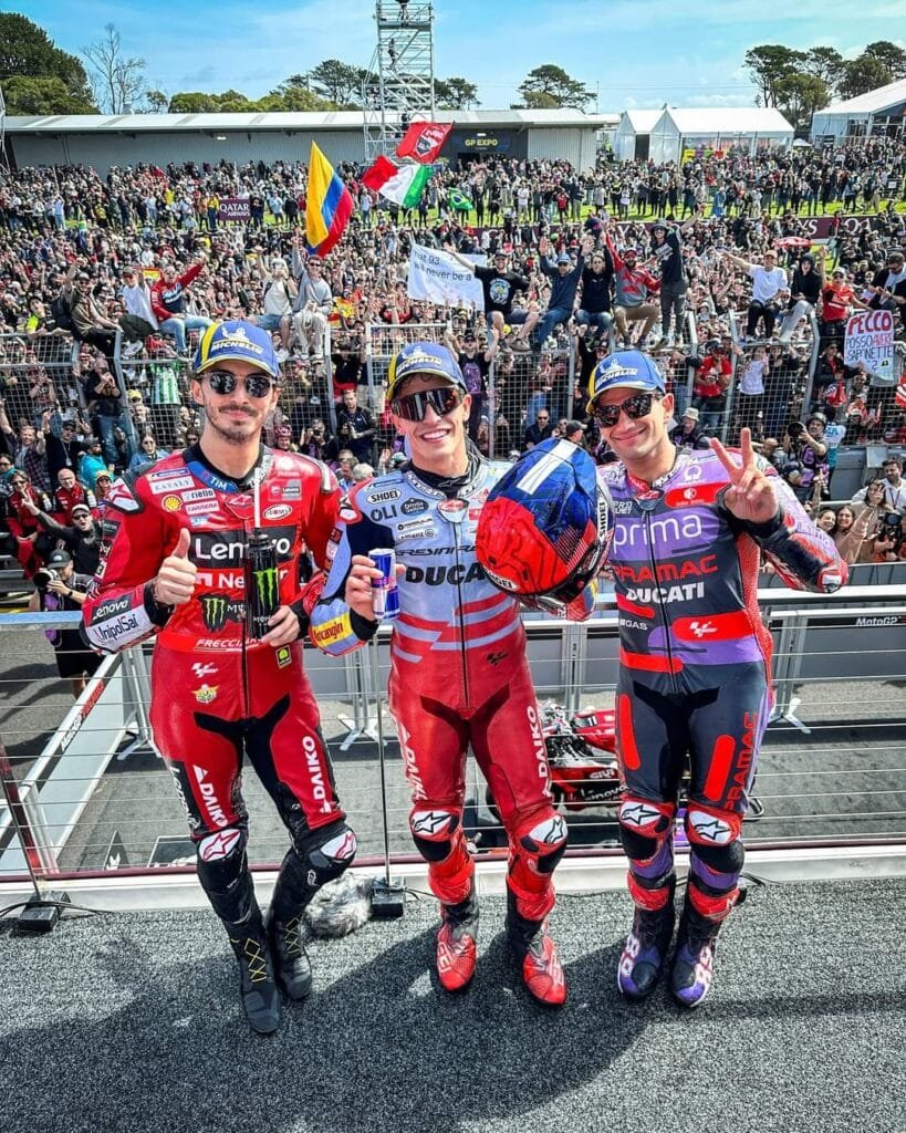 Marc Marquez (Gresini Racing MotoGP) and Jorge Martin (Prima Pramac Racing) went toe-to-toe at the Qatar Airways Australian Motorcycle Grand Prix, escaping to create a private showdown at front and duelling through the final four laps – split by less than a second over the line. Marquez came out on top despite dropping back after a nightmare start, with the 93 stalking the 89 through the latter stages before making his attack and making it stick. In the title fight, Martin’s second place nevertheless sees him increase his lead by four points, with key rival and reigning Champion Francesco Bagnaia (Ducati Lenovo Team) completing the podium at a distance on Sunday.