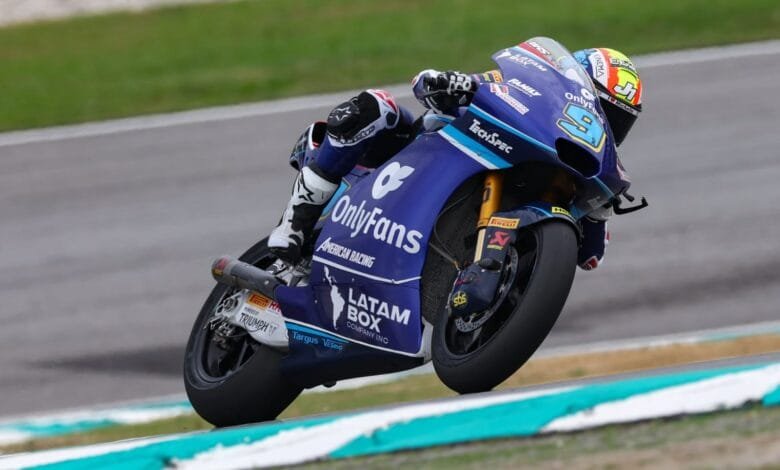 A replacement rider pinching pole position doesn’t happen very often – but it has today! A brilliant all-time lap record in Sepang from Jorge Navarro (OnlyFans American Racing Team) saw the Spaniard claim a Saturday afternoon P1, as OnlyFans American Racing Team celebrate a Q2 1-2 as Marcos Ramirez secured a P2 start. A late flying lap from Celestino Vietti (Red Bull KTM Ajo) saw the Italian grab a front row start for Sunday’s encounter.