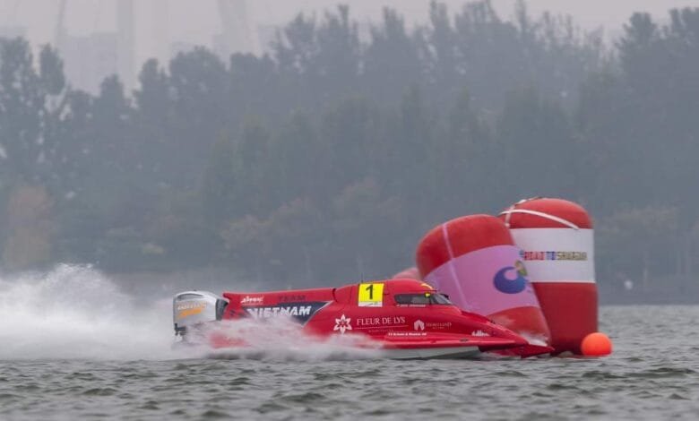 Andersson made a superb start but the race was yellow-flagged almost immediately when Arand barrel-rolled in a spectacular crash in a bid to avoid a crash with Al-Qemzi. The impact removed the engine cowling and damaged a sponson with the Estonian now facing a race against time to repair the hull before the race on Saturday unless he calls upon Team Vietnam’s spare boat.