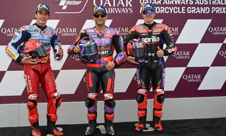 Franco Morbidelli (Prima Pramac Racing) is joined on Row 3 by Alex Marquez (Gresini Racing MotoGP) and Alex Rins (Monster Energy Yamaha MotoGP), with a high-profile fourth row seeing Bastianini joined by Brad Binder (Red Bull KTM Factory Racing) and 2023 Australian GP podium finisher Di Giannantonio.