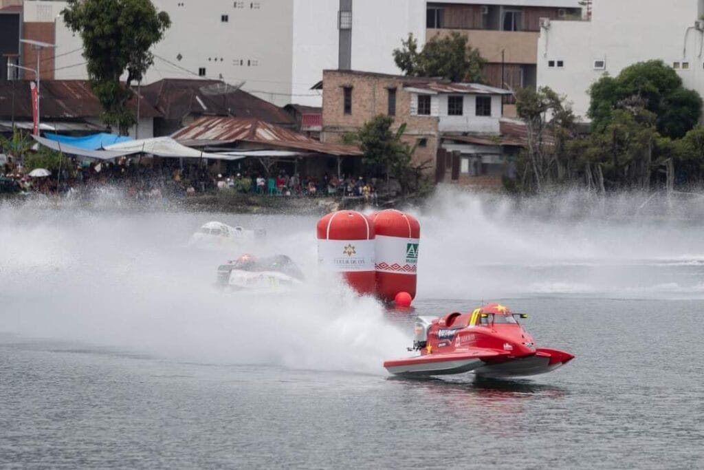 Just a dozen drivers resumed racing on lap nine after a yellow turn buoy had been secured by the rescue team. It had been a disastrous race for the UAE with all four Team Abu Dhabi and Victory Team boats out of the running.