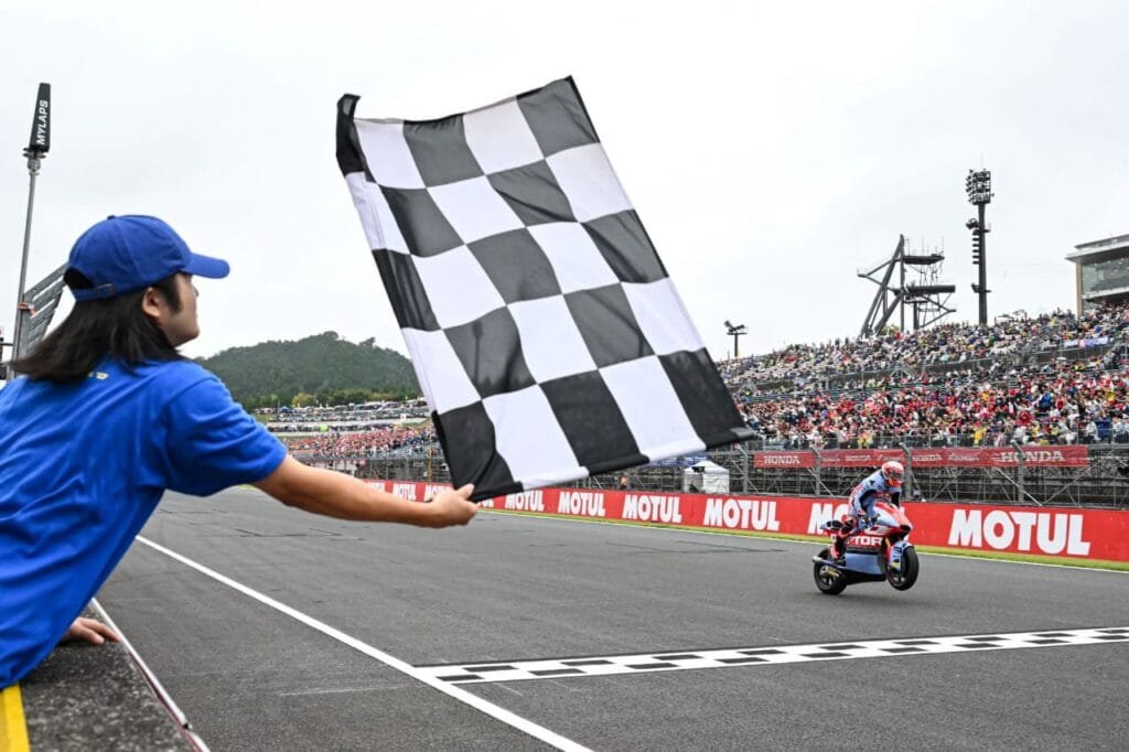 On Lap 11 of 12, the gap between the leading duo was a second. Gonzalez wasn’t streaking clear as the pre-pass pace suggested, but heading onto the last lap, the gap was 1.1s despite Ogura setting the fastest lap of the race. Would Gonzalez hold on for a dream debut Grand Prix victory? Yes he would. The slick tyre gamble paid off as Gonzalez led home title chase leader and home hero Ogura, as Salac fended off Alcoba to bag his first podium since the 2023 French GP.